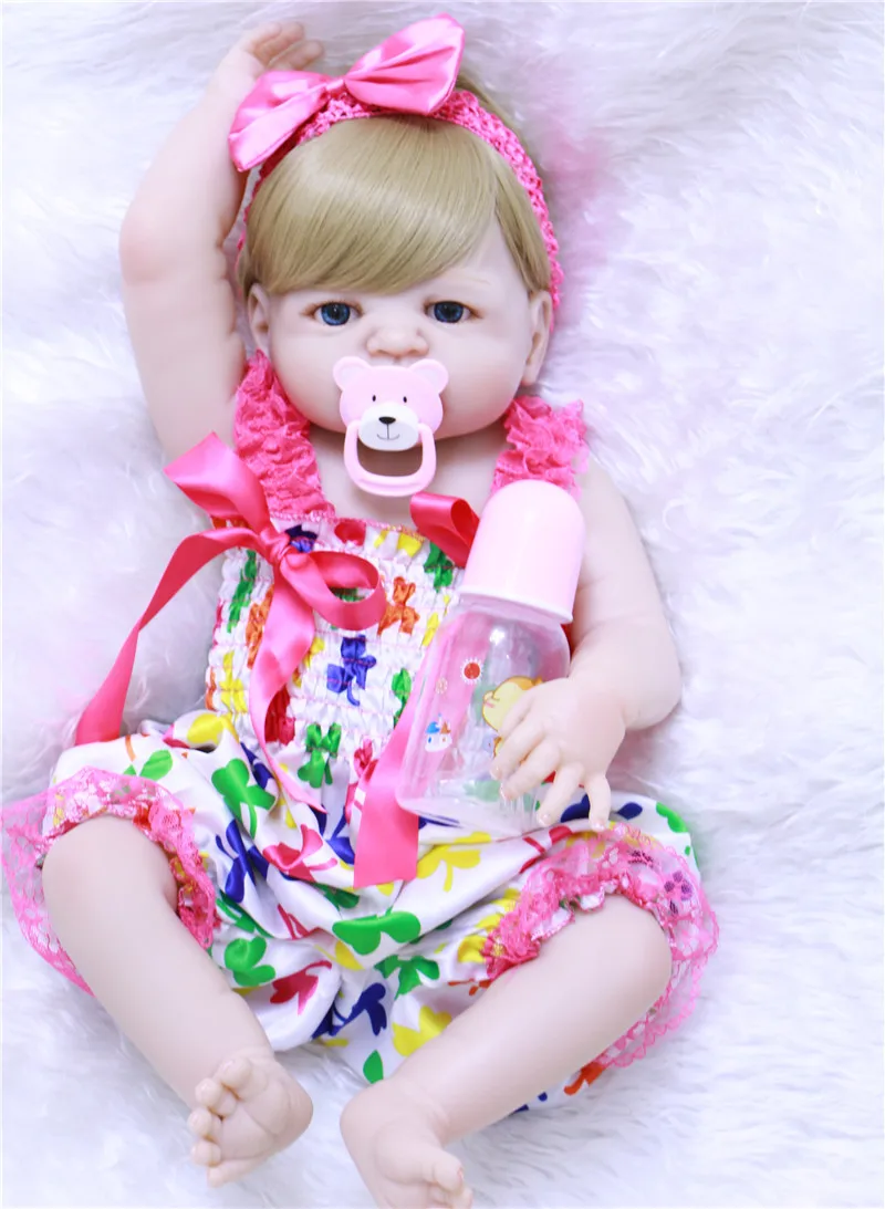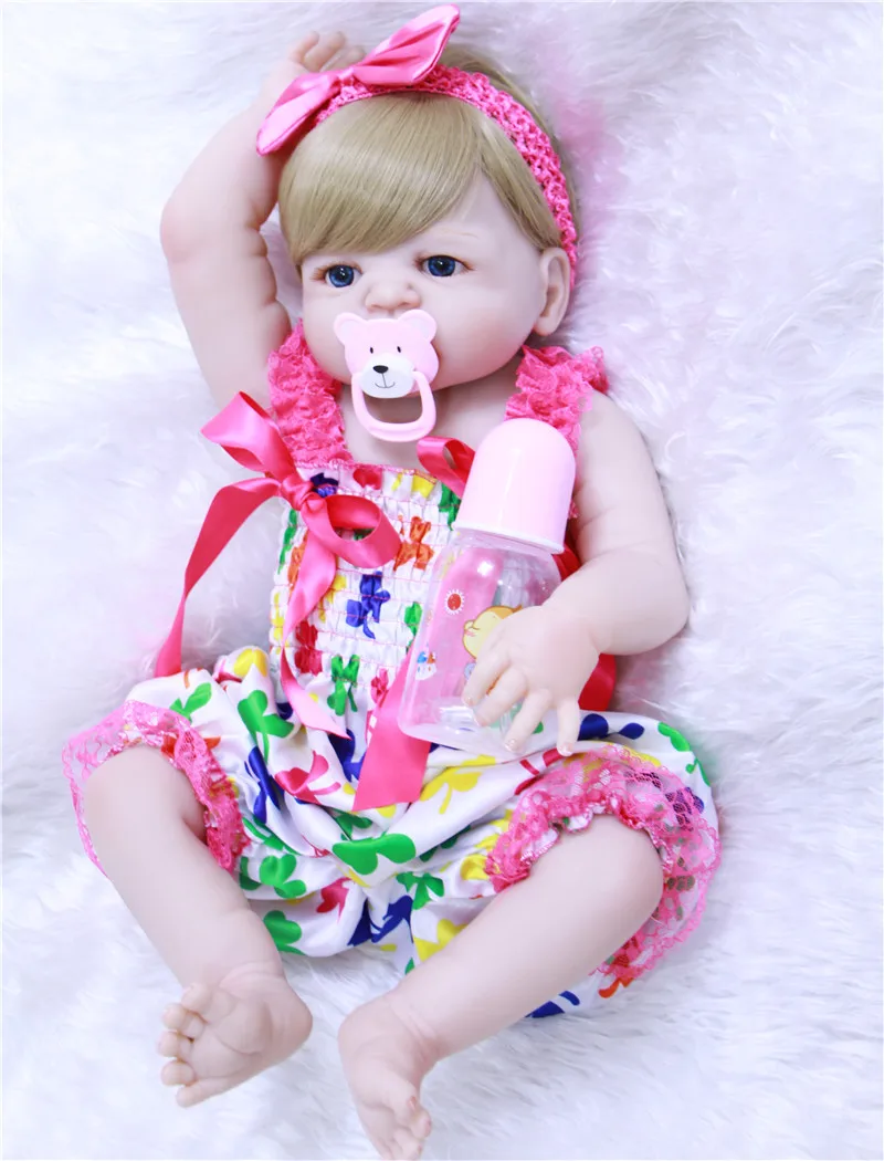 ORIGINAL Full silicone reborn dolls NPK 22" bebes reborn new born girl princess dolls for child blond hair w